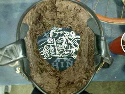 Yesterday I decided to follow the steps to reline old helmets that was posted on ChopCult. Here are the results. I used an old So-Cal Speed Shop t-shirt for the head liner and brown crushed velvet fabric for the outer edges. Here is the results.