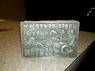 So I got this belt buckle from Chris. I added some moulding clay to the back to make it around 1 1/4" thick. I'm going to use this to make a mold to make some taillights. I will make 5 of them. If they turn out ok and you want one, let me know. They will sell for around $120 bucks. Stay tuned for more updates on this process.